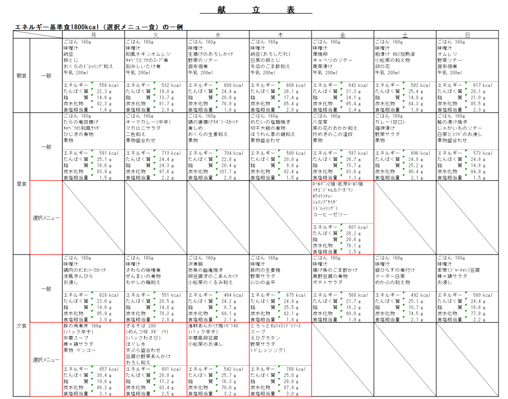 当院では、特別メニュー食(選択食)を週に5回提供しております。